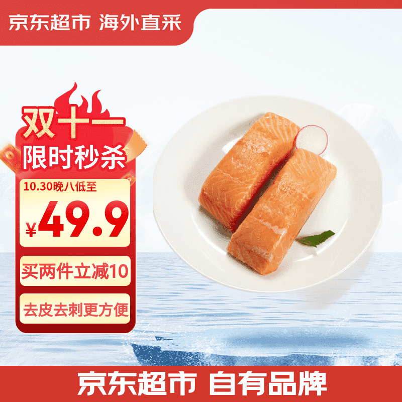 包邮 京东超市 海外直采智利三文鱼段大西洋鲑400g 单片真空 新老包装交替发货
